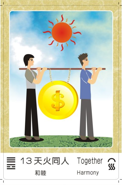 同人:親近、和同,表有志一同,相和而成。理念相同共處愉快。事業投資、感情皆是和睦融洽。