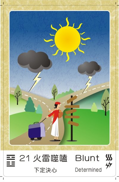 因卦象表示目前如有物梗在口中,必需極力咬斷該物,才能衝破困難解決問題,事情方可順意。