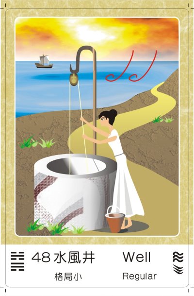 井:水井、井底之蛙。表小水固定的水源,也有格局小卻只要能過活的保守心態。主小吉象。