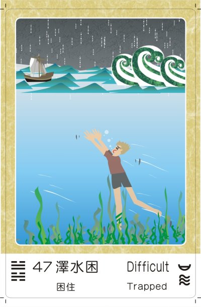 得此卦者為艱難、困窮、不能達志,且多辛勞之時。此卦因兌澤女在外、坎水男在內,必主家中所有困苦之事多由女者在承擔。