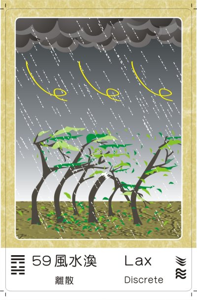 渙:表渙散、離散之象,主凶象。有心神不寧、精神不佳,人事向心力均已離散,而頹廢不振的運勢。