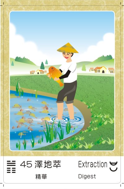 萃:萃取、篩檢、去蕪存菁,表聚集、重新選取之意。主吉象。